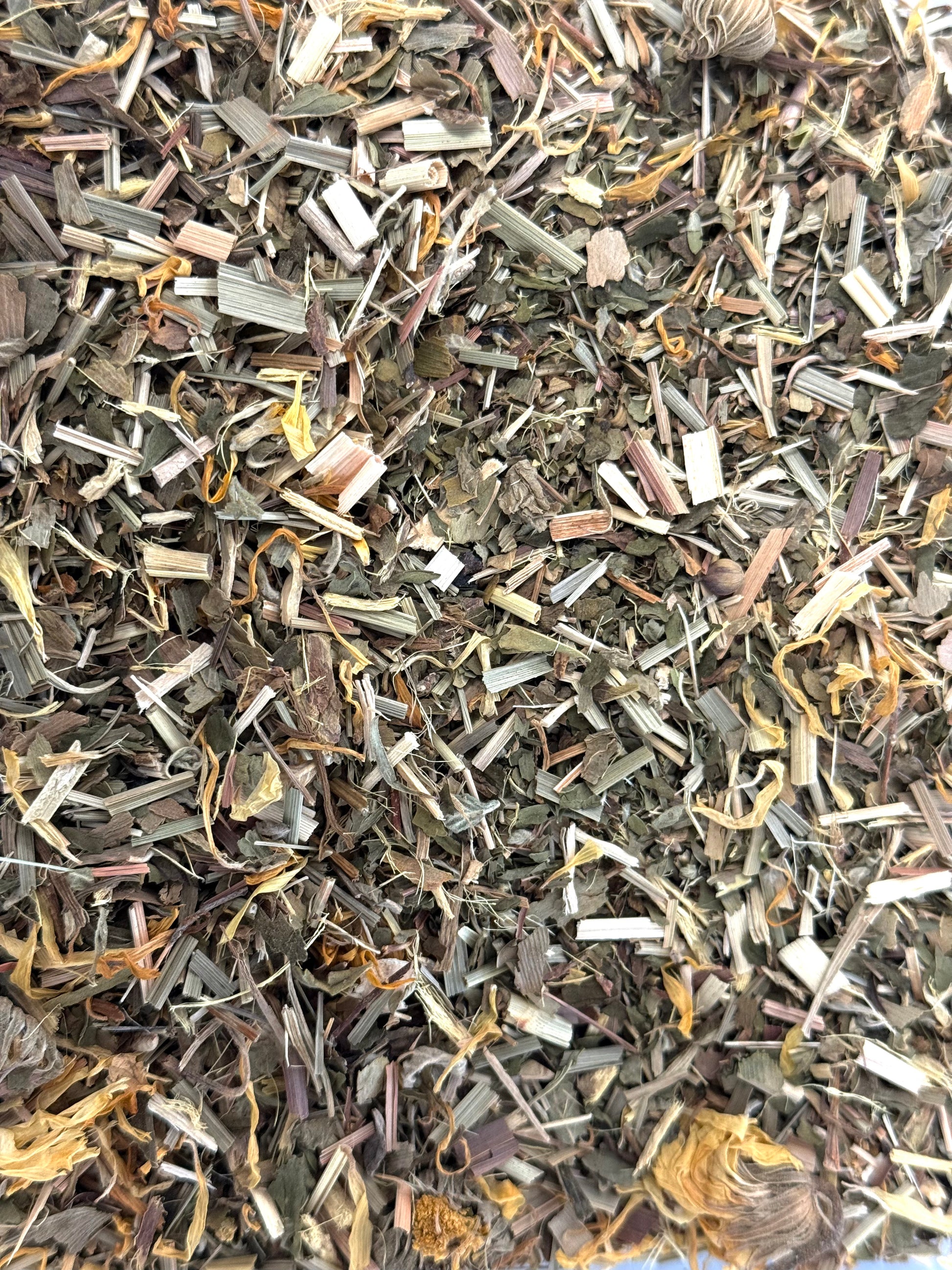 This golden infusion harmonizes lemongrass for mental clarity, ginkgo to boost cognitive flow, and licorice root to calm the nervous system. Marigold petals infuse your cup with gentle brightness, while damiana stimulates creativity and insight. Together, they create a serene, uplifting brew that helps clear mental fog and opens the path to inspired thinking.